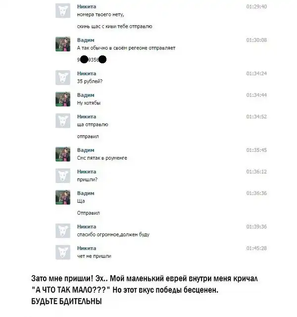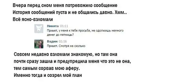 Далее вас ждет история обмана мошенников, которые по давно уже накатанной схеме искали доверчивую жертву. Конечно же, речь идет о совсем небольшой сумме, но человек, сумевший обмануть жуликов, скорее всего, испытывал в тот момент совершенно непередаваемые ощущения.