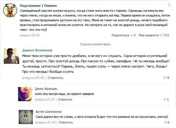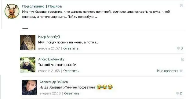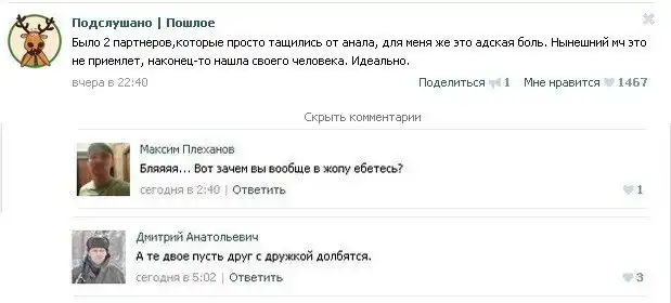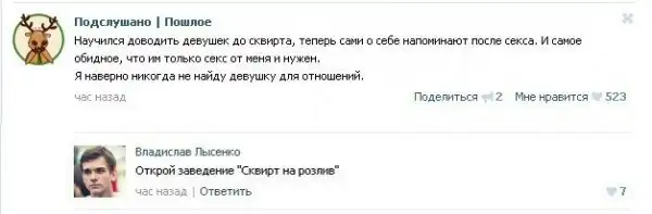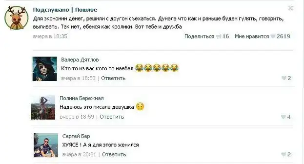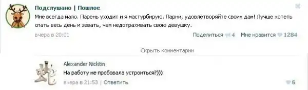 Пошлые посты из соцсетей с забавными комментариями к ним.