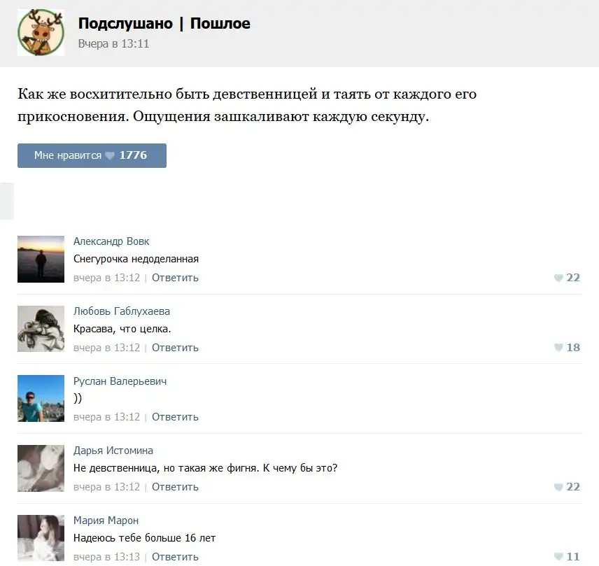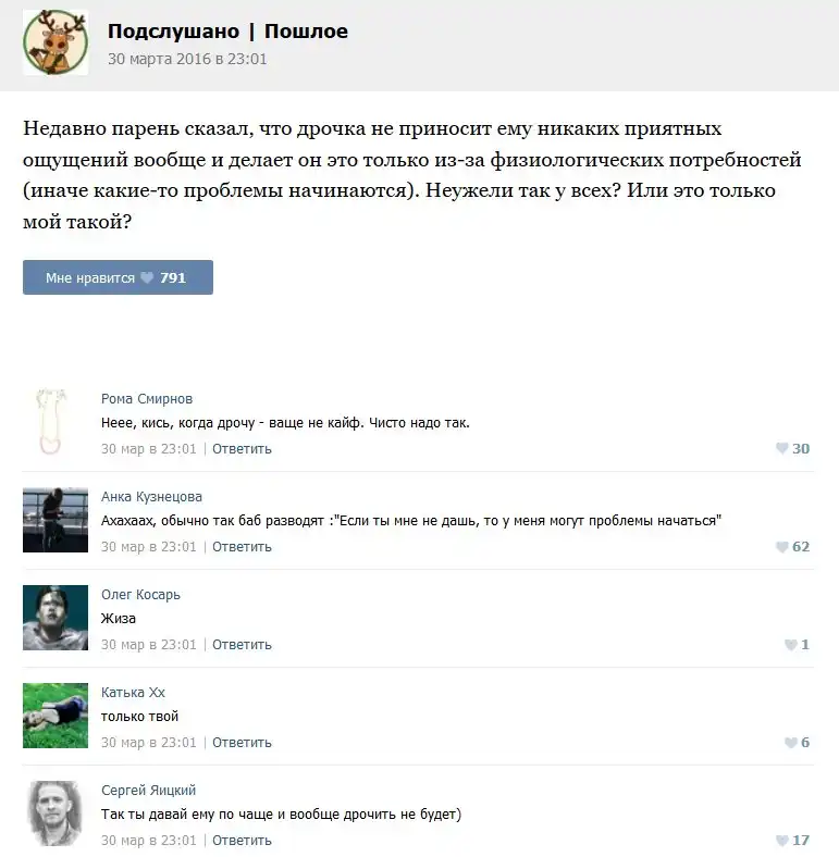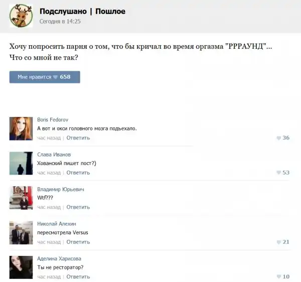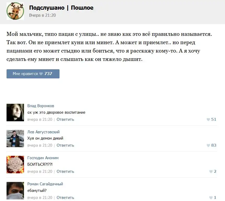 Пошлые посты с забавными комментариями к ним.