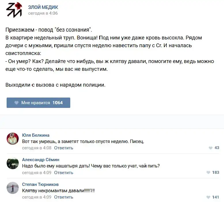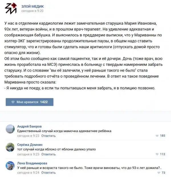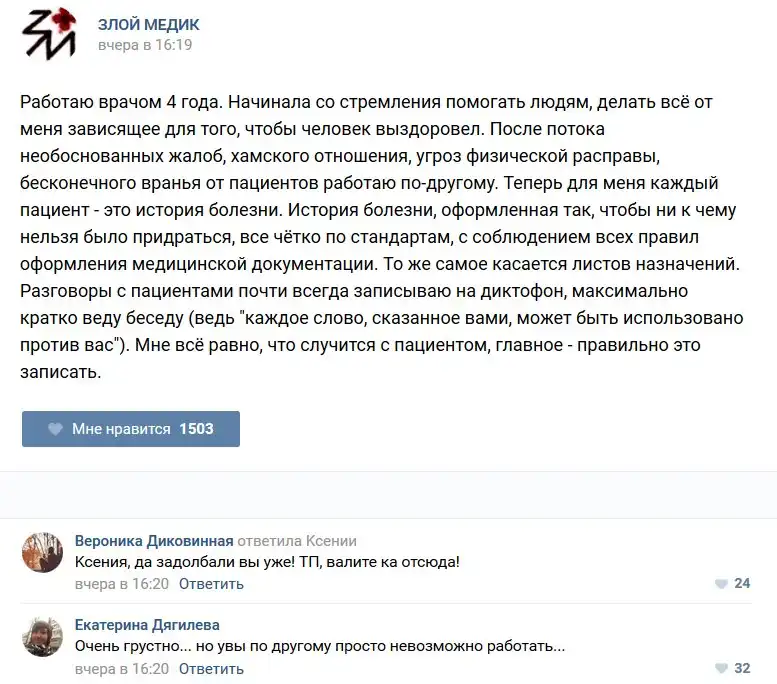 В нашей стране несколько проблем или бед, но к ним не относится медицина, но сегодня мы как раз будем говорить именно о ней. Запись с названием "Истории врачей",расскажет Вам о том, какие-же истории происходят с врачами, их пациентами и почему обе категории иногда ведут себя странно.