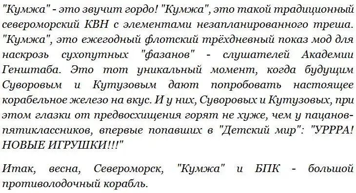 "Ооооо!.." - , только и смог рефлекторно выдать командир боевой части 4 (БыЧок-4), узрев лампасоносную фигуру на пороге командного пункта связи. Но в следующую минуту кап-лей подобрался, вскочил, едва не протаранив башкой подволок.