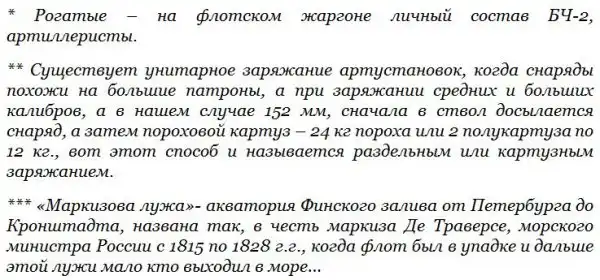Для некоторых читателей может быть неожиданным то, что артиллерийские стволы на крейсерах при консервации забивают пушечным салом. Это свиное сало, которое по причине низкого вкусового качества не стали употребл*ть в пищу, а пустили на технические нужды. Это сало, туго забитое в стволы является и смазкой и консервантом, и предохраняет стволы от внутренней коррозии.