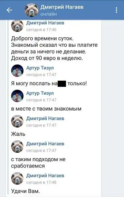 Многим из нас знакома история, когда нам предлагают заработать денег в сети. В большинстве случаев «работа» эта является весьма сомнительной, однако количество предложений от этого не уменьшается. Далее вас ждет довольно занимательная переписка с человеком, предлагающим подобную «работу».