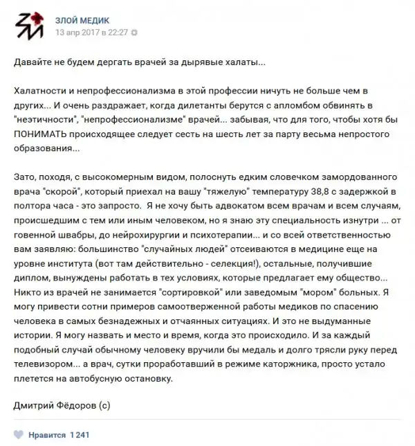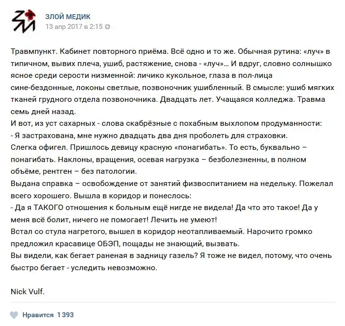 В нашей стране несколько проблем или бед, но к ним не относится медицина, но сегодня мы как раз будем говорить именно о ней. Запись с названием "Истории врачей". Злой медик (25 фото) расскажет Вам о том, какие-же истории происходят с врачами, их пациентами и почему обе категории иногда ведут себя странно.