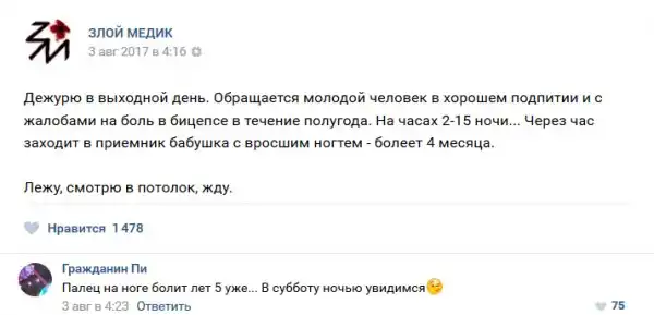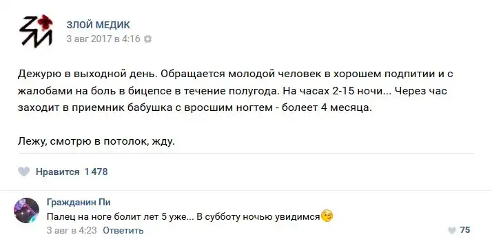 В нашей стране несколько проблем или бед, но к ним не относится медицина, но сегодня мы как раз будем говорить именно о ней. Запись с названием "Истории врачей". Злой медик (25 фото) расскажет Вам о том, какие-же истории происходят с врачами, их пациентами и почему обе категории иногда ведут себя странно.