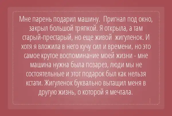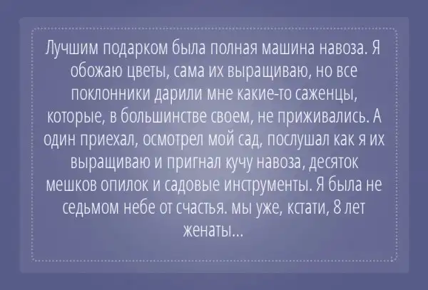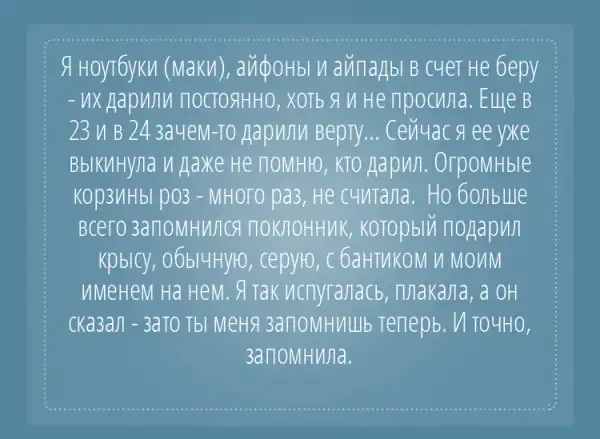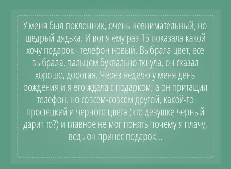 Не секрет, что женщины ждут от своих поклонников помимо любви, внимания, восхищения еще и щедрости. Многие хвастаются тем, как получили довольно приличные подарки, даже от тех, кто ничего не потребовал взамен. а бывают и смешные подношения