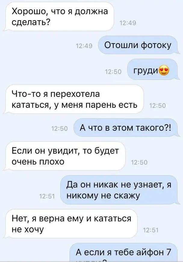 Друзья, смотрю тут переписки давно и удивлялся тем, кто в это верит. До тех пор, пока сам не столкнулся с этим. Захотел проверить "возлюбленную". Целый год вместе были, вместе прошли многое, хотел сделать предложение осенью, даже кольцо уже выбрал. Жили мы только не вместе, но это мелочи.