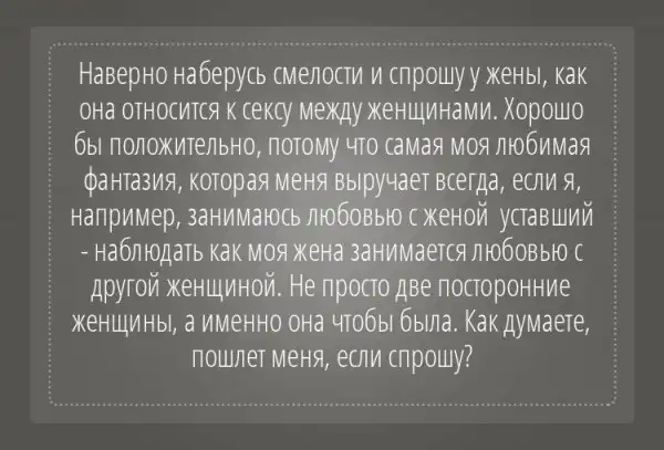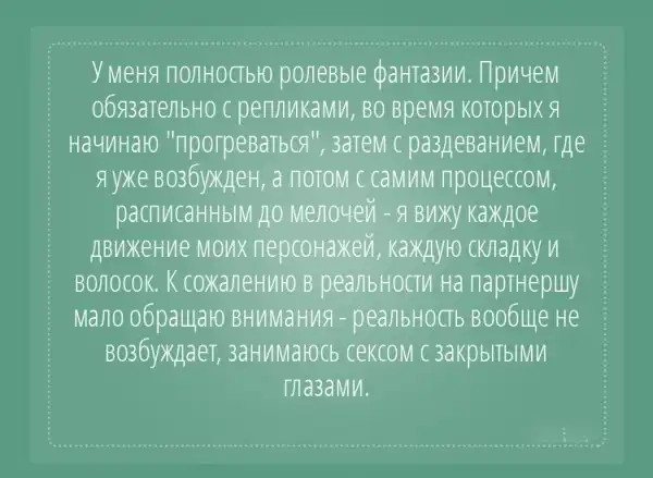 Фантазируете ли вы во время секса? И кого, что как представляете? Делимся с вами некоторыми откровениями и надеемся, что вы с нами тоже поделитесь своими!