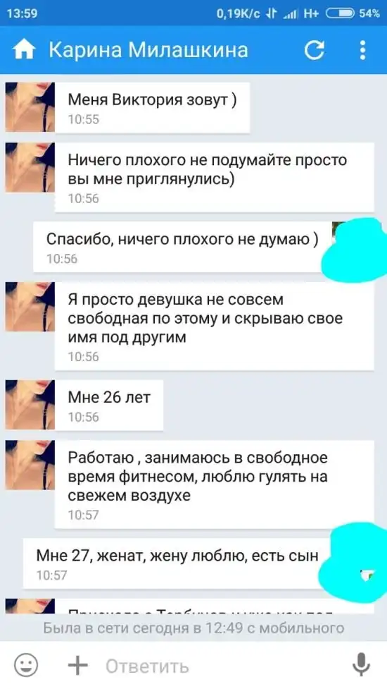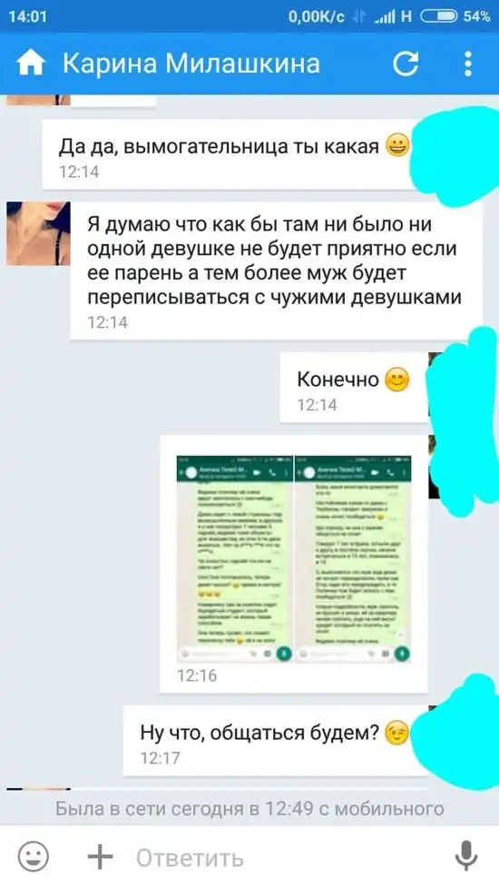 Недавно мы рассказывали вам о разводе с бесплатным велосипедом, а сегодня хотели бы рассказать о еще одном способе вымогательства, на который довольно часто попадаются женатые мужчины. Девушка пытается втереться в доверие к женатому мужчине, а затем требует от него денег, шантажируя скриншотами переписки. Читаем переписку далее, и вам все сразу станет ясно.