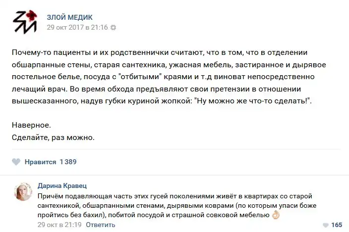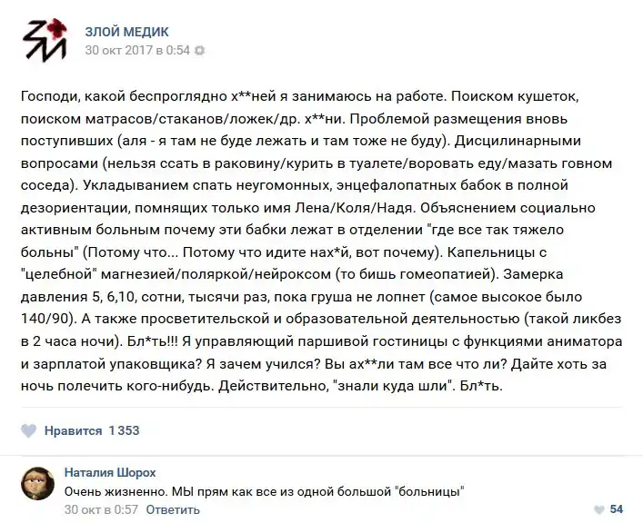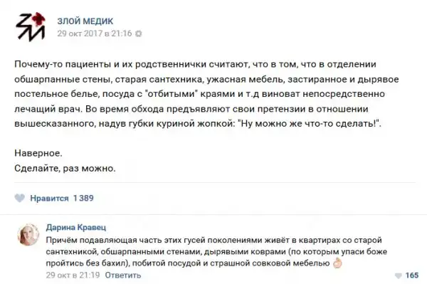 В нашей стране несколько проблем или бед, но к ним не относится медицина, но сегодня мы как раз будем говорить именно о ней. Запись с названием "Истории врачей". Злой медик (25 фото) расскажет Вам о том, какие-же истории происходят с врачами, их пациентами и почему обе категории иногда ведут себя странно.