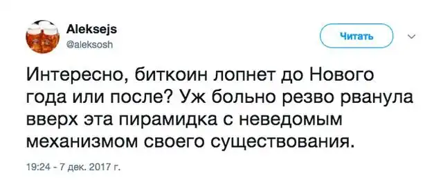 Стоимость биткоина в ходе электронных торгов побила очередной рекорд и составила 20 000 долларов. Давайте вспомним прогнозы и предсказания пользователей сети, которые в разное время имели отношение к этой криптовалюте.