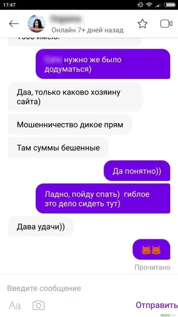 На популярном сайте интернет-знакомств работают мошенники, которые под видом девушек общаются с пользователями, после чего приглашают их сходить в так называемый антикинотеатр. Покупая билеты на сайте несуществующего кинотеатра, доверчивые пользователи сети добровольно расстаются со своими деньгами. О том, как все устроено, рассказал один из сотрудников подобной организации, в переписке с несостоявшейся жертвой.