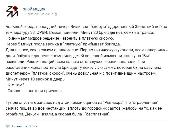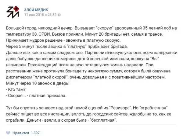 В нашей стране несколько проблем или бед, но к ним не относится медицина, но сегодня мы как раз будем говорить именно о ней. Запись с названием "Истории врачей". Злой медик расскажет Вам о том, какие-же истории происходят с врачами, их пациентами и почему обе категории иногда ведут себя странно.