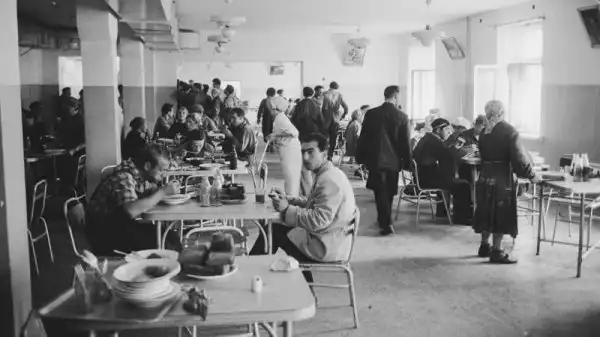 Рабочие стояли за едой, ожидая своей очереди. Они говорили друг другу шутки и, иногда матершинные слова, отдыхая после тяжелого трудового времени. В столовую зашел Директор завода, которого недавно назначила партия. Даже в те, сталинские времена, на заводе не было принято рабочим и директору обедать вместе. Люди разом замолчали, проявляя почтение. Поварихи изменили лица и стали счастливыми на вид.