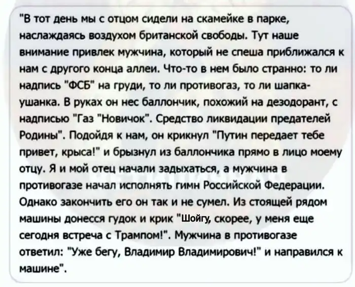 Немногие знают, что Юлия Скрипаль, уже дала показания по делу. Их передали мне мои коллеги из МИ-6. Эксклюзив опубликован ниже: