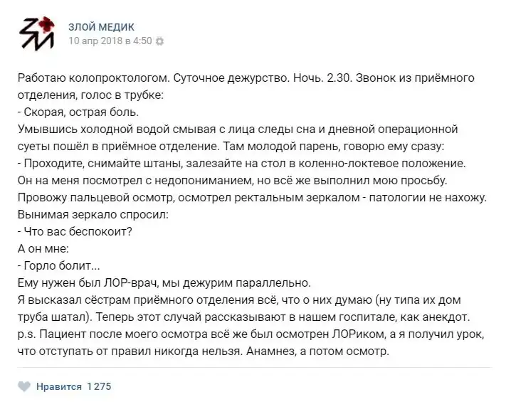 В нашей стране несколько проблем или бед, но к ним не относится медицина, но сегодня мы как раз будем говорить именно о ней. Запись с названием "Истории врачей". Злой медик расскажет Вам о том, какие-же истории происходят с врачами, их пациентами и почему обе категории иногда ведут себя странно.