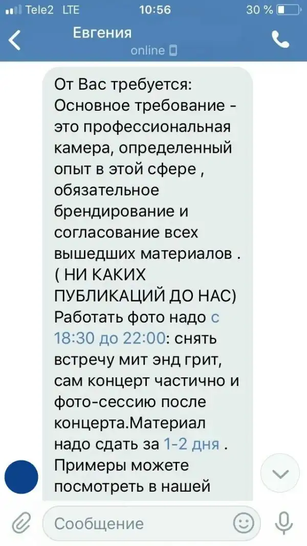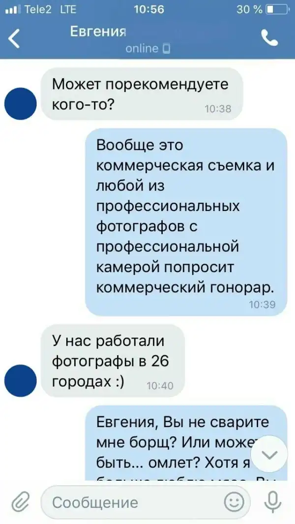Перед вами одна интересная переписка, которая произошла между фотографом и клиентом, предлагавшим поработать бесплатно и выдвигавшим еще и некоторые требования.