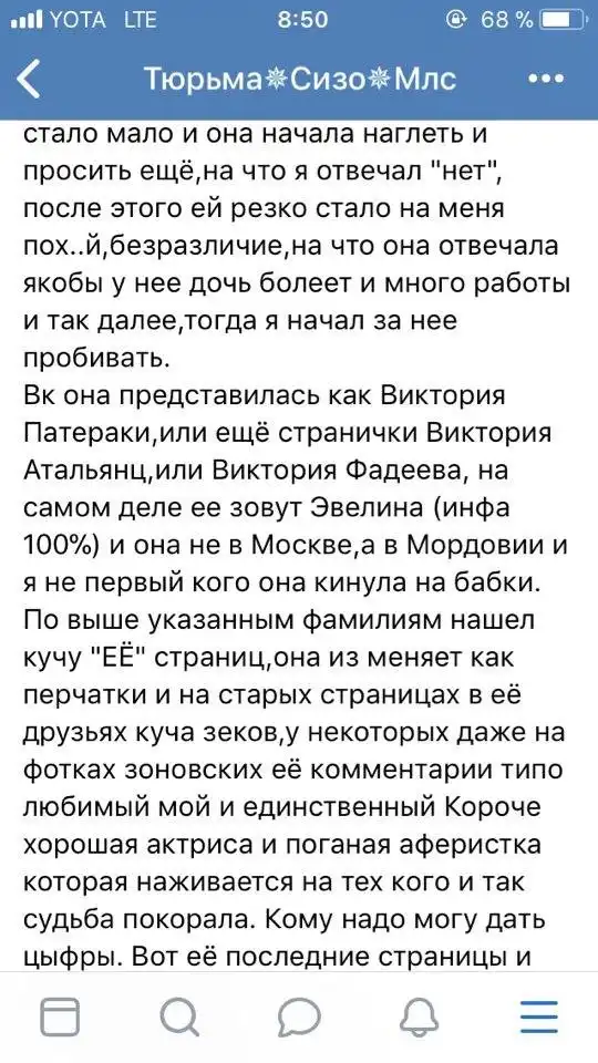Но оказалось, что эта штука работает и в обратном направлении. Во Вконтакте на профильных пабликах про тюрьму охотятся расчетливые мошенницы, втираясь в доверие к сидельца, рассказывают невероятно слезливые истории и просят перевести им на карту денежные средства. Что интересно, зеки деньги переводят.