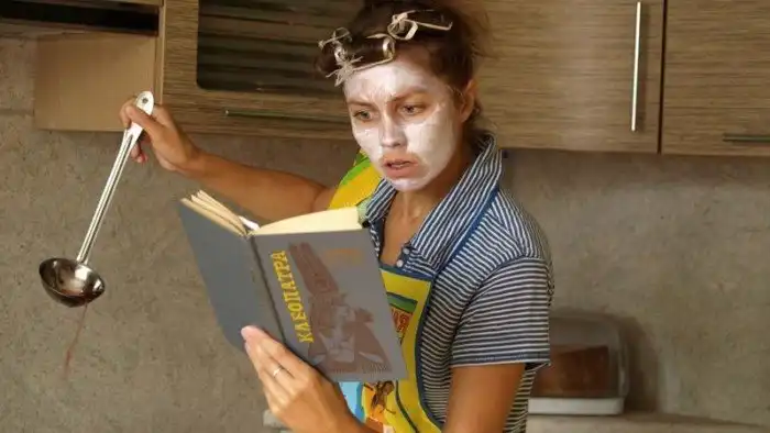 Обнаруживает с детства вдолбленные матерью поведенческие клише, как-то: готовка, уборка, стирка, глажка, парикмахерская, магазин. Вырезает из женских журналов рецепты блюд, диет, масок для лица и коленок. Круг чтения ограничивается женскими романами и гороскопами. Точно знает почем помидоры на рынке и что логистика — раздел филологии.