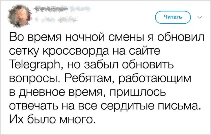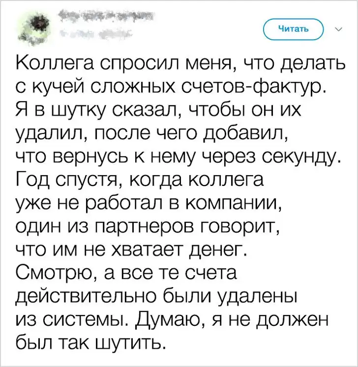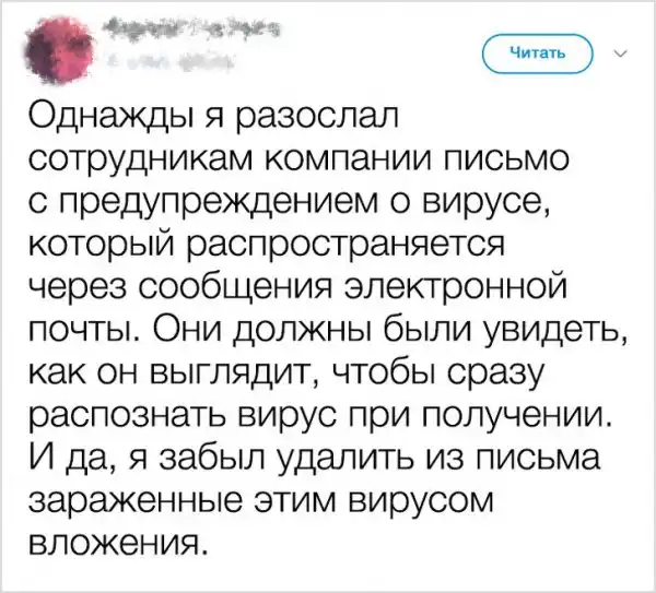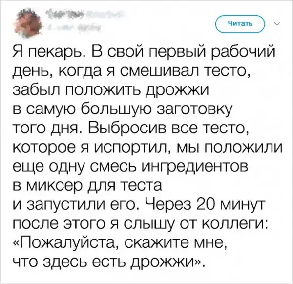У каждого из нас есть веселые рабочие истории. Но иногда случаются такие казусы, которые могут лишить не только хорошей репутации, но и рабочего места. Люди из разных стран поделились в твиттере историями своих фейлов, которые теперь вспоминают с улыбкой, хотя тогда было совсем не весело.