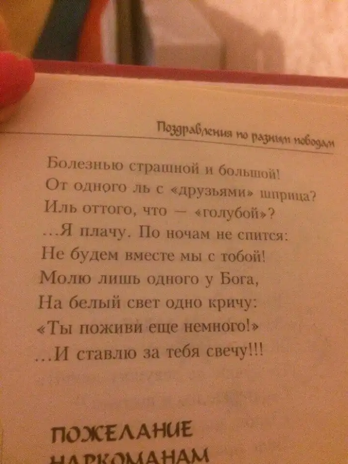 Эти двое на целых 400 страниц излили свои творческие порывы, получилось это у них не совсем удачно. В книге собраны поздравления по всем возможным поводам: дни рождения, новогодние праздники, пасха. Но нас привлекли более нетривиальные события.