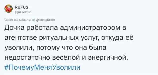 Телеведущий из Америки по имени Джимми Фэллон довольно часто проводит в своем Twitter-аккаунте опросы, во время которых его подписчики обмениваются своими историями из жизни. На этот раз он попросил их рассказать о самых забавных и странных провалах на работе, которые привели к увольнению. Как оказалось, некоторые люди могут быть абсолютно несовместимыми с той или иной работой, но это не делает их истории менее забавными.