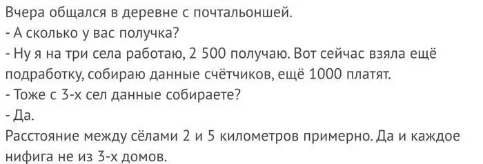 Пару дней назад прочитала душещипательный пост про почтальона, который работает за 3500р в месяц на 3 ставки.