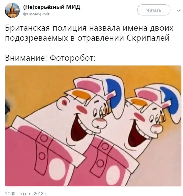 Вчера мы писали о том, что Великобритания официально обвинила Россию в отравлении Сергея Скрипаля и его дочери Юлии, назвав имена подозреваемых. Данная тема стала активно обсуждаться в социальных сетях, пользователи которой отреагировали на данное известие шутками и мемами.