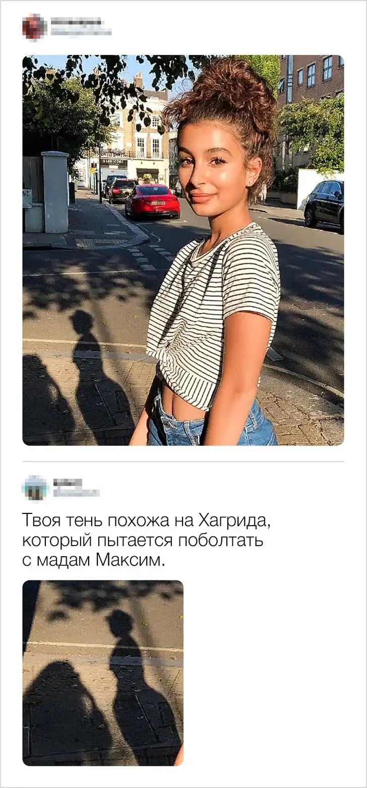 Некоторые пользователи интернета виртуозно владеют искусством оставлять такие комментарии, которые собирают больше лайков, чем сами посты. А многие из них не только остроумные, но еще и наблюдательные люди. Ведь не каждый заметит на фото девушки ее «злую» коленку или то, что чья-то тень похожа на Хагрида.