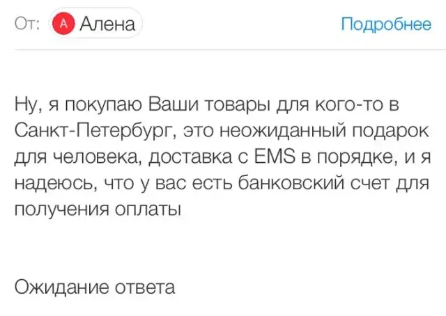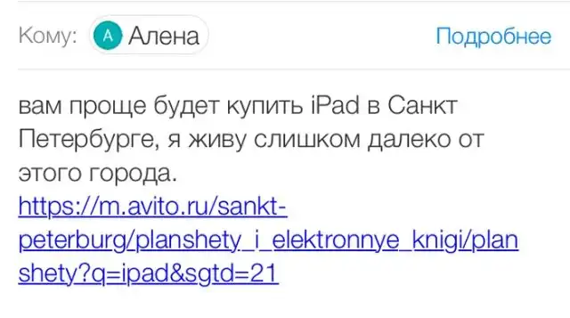 Автор этого поста разместила объявление о продаже своего iPad на одном из сайтов, и очень удивилась, когда всего спустя полчаса получила сообщение от "покупательницы". По словам клиента, она живет за границей и очень страстно желает купить именно этот планшет в подарок для своего знакомого.
