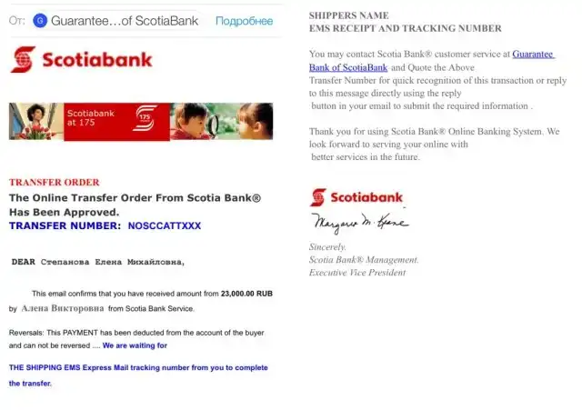 И тут приходит письмо от "самого банка"! Мол, деньги со счета клиента уже списаны, отправляйте товар, а мы разморозим ваши 23 тысяч рублей.