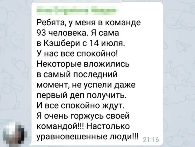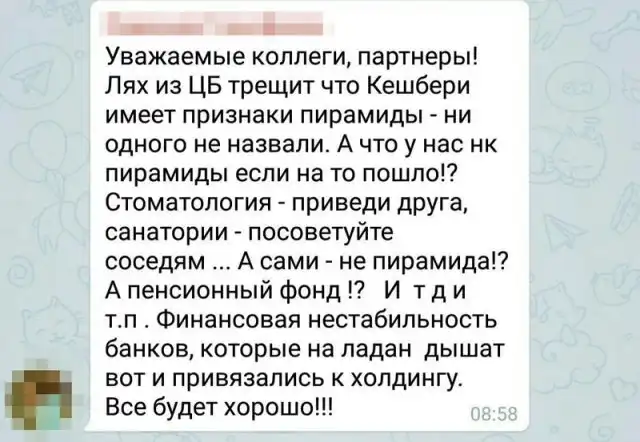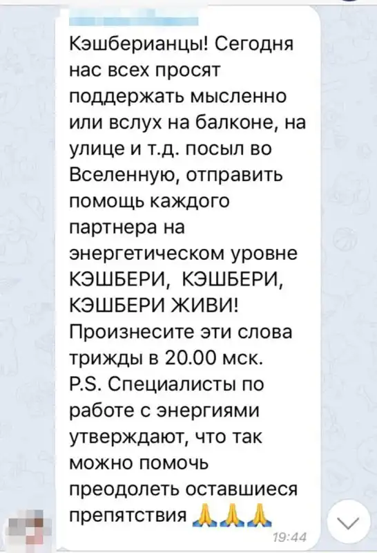 Как известно, пирамида "Кэшбери", которая гордо называла себя финансово-инвестиционным холдингом, обещала своим вкладчикам огромные прибыли, рассказывая о доходности до 600% для физических лиц и до 228% для малого и среднего бизнеса. Но, как говорится, люди все никак не научатся, что бесплатный сыр бывает лишь только в мышеловке. Давайте почитаем комментарии и отзывы людей, которые переживают крах "Кэшбери".