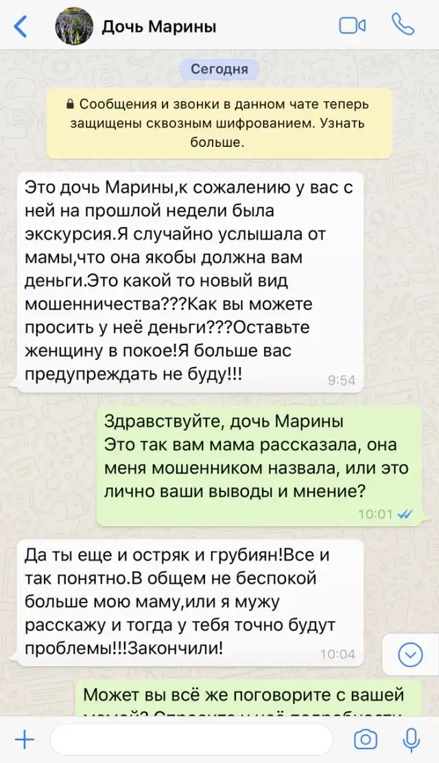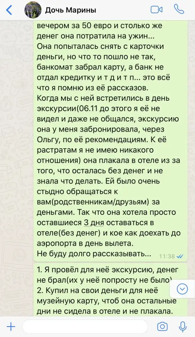 Мы уже множество раз читали о различных способах, которые используют мошенники для обмана своих жертв. Но когда человек в действительности помогает незнакомцу, а затем его называют мошенником, это очень обидно. Автор этого поста пишет, что занимается экскурсиями, и недавно у него была туристка, которая попала в сложную ситуацию из-за своей наивности. Он помог ей, но всего несколько дней спустя получил сообщение с угрозами от ее дочери.