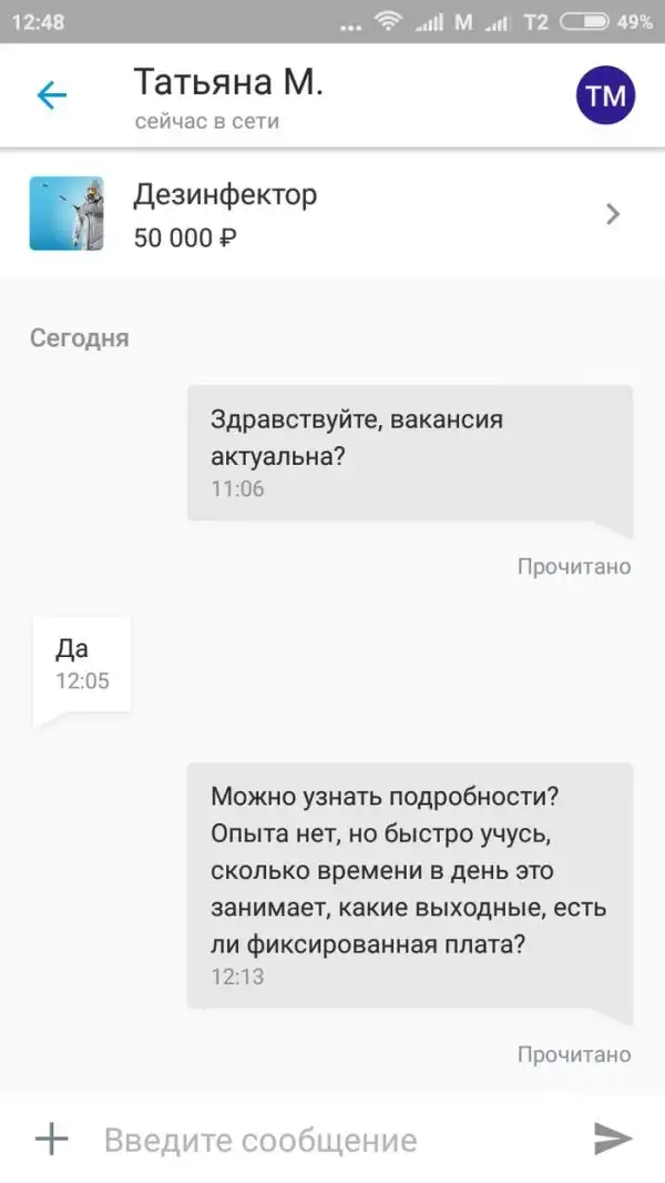 Автор этого поста пишет, что он как раз сейчас ищет работу, поэтому его заинтересовала данная вакансия. Он решил написать работодателю, чтобы выяснить все детали, но что-то явно пошло не так.