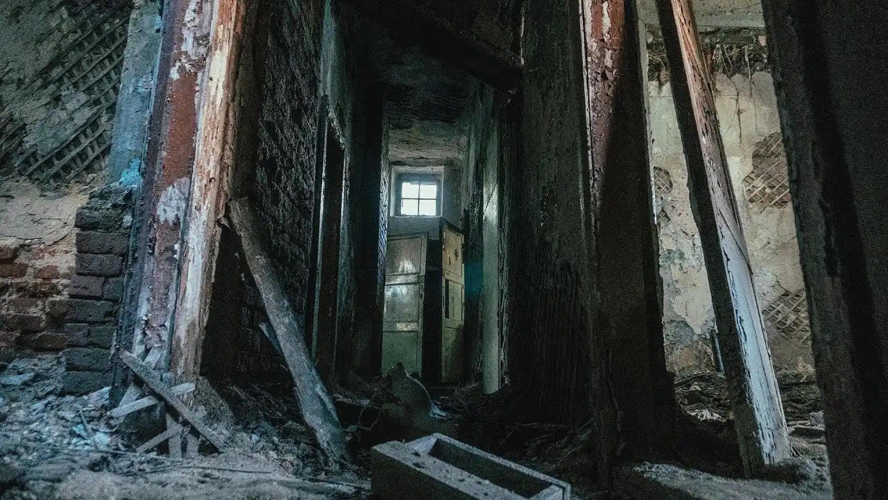 Немного опасаясь, я стволом автомата приоткрыл старую дверь, она заскрипев поддалась. Грязь и мох давно обжились на ступеньках. Затхлый, сырой воздух исходил из подала. Стены когда то окрашенные в светлый- зелёный цвет, сейчас смотрелись как после пожара, слои краски вспучились и свернулись трубочкой, обнажая обсыпавшуюся штукатурку.