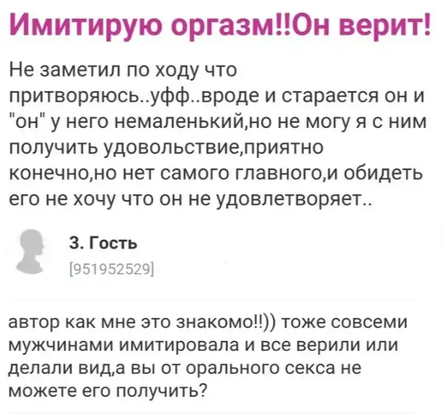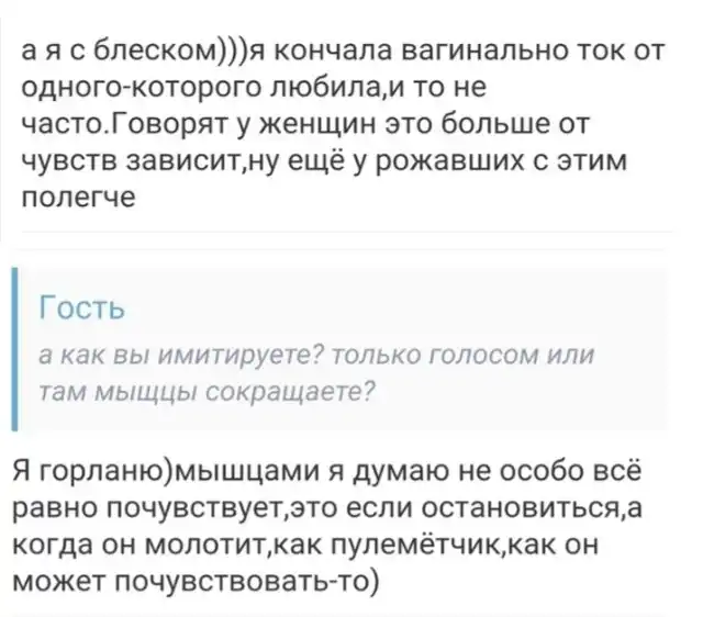 В этой подборке девушки затрагивают очень интимную тему, обсуждая свои проблемы с другими представительницами слабого пола на женских форумах. Предлагаем вам почитать обсуждение интимных деталей, которые обычно не обговаривают с подругами, ведь гораздо проще спросить совета на эту тему анонимно на страницах сети.