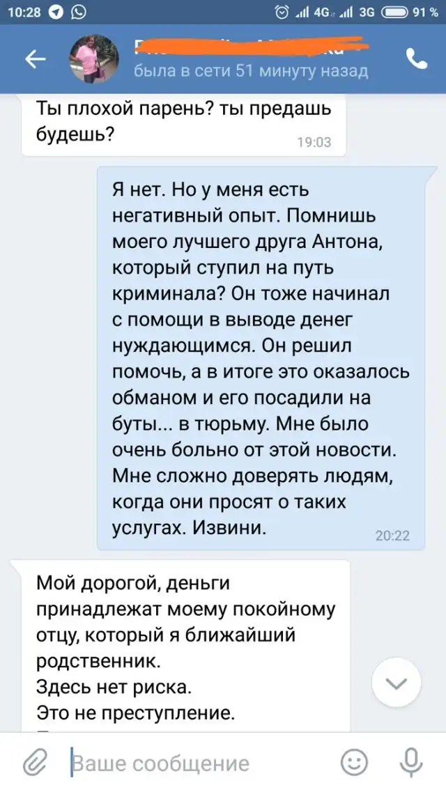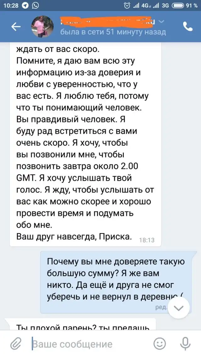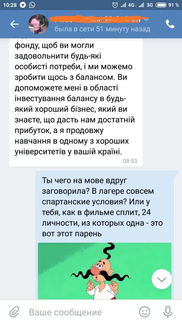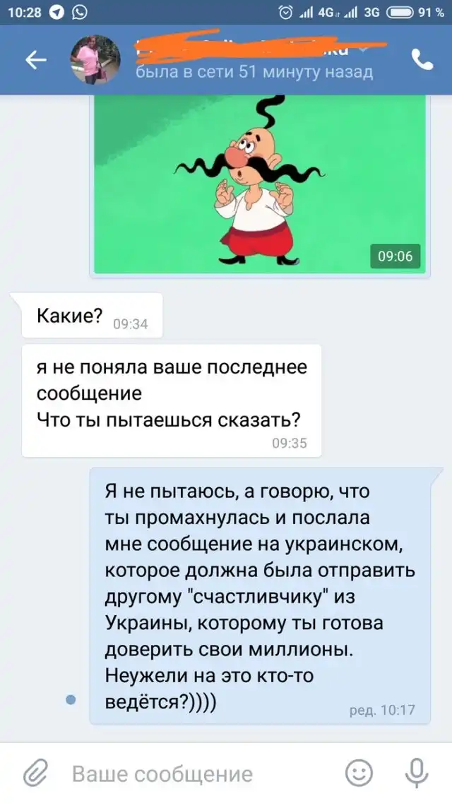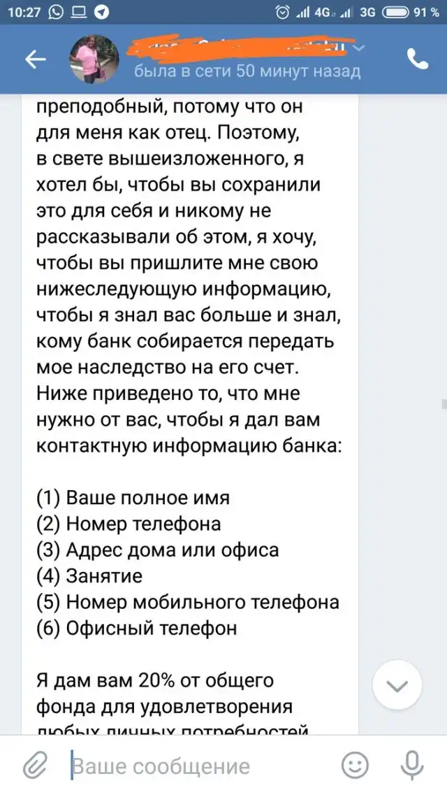 Автор этого поста пишет, что недавно у него состоялся весьма интересный диалог с "беженкой", которая ему обещала "золотые горы", но во время беседы все пошло совсем не так, как планировал мошенник. Неужели до сих пор кто-то ведется на подобные разводы в сети? Читаем далее.