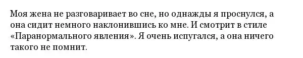 Один из пользователей социальной сети предложил своим подписчикам поделиться странными и пугающими фразочками, которые произносили во сне их вторые половинки или близкие друзья. Пожалуй, по некоторым из таких историй можно запросто писать сценарии к фильмам ужасов. Читаем далее.