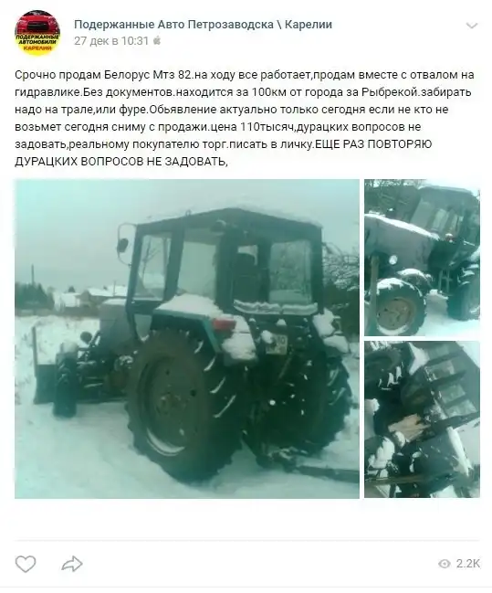 В комментариях один из пользователей сети сразу же указал на объявление, в котором продавался тот самый трактор.