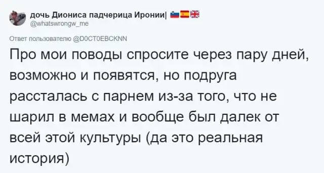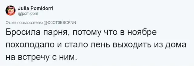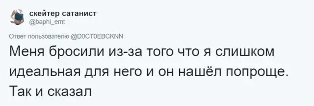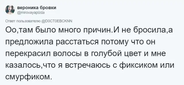Пользователи Twitter решили поделиться самыми странными, необъяснимыми и нелепыми причинами, из-за которых они расстались со своими бывшими. Конечно же, не о всех из таких причин можно рассказать своим родителям. Почему? Читаем подборку скриншотов в продолжении поста, и вам сразу станет ясно.