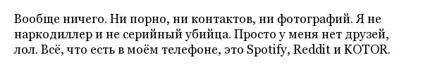 Современные смартфоны в наши дни знают о нас столько всего интересного, сколько, возможно, мы и сами о себе не знаем. Они помнят все наши поисковые запросы, хранят тысячи личных фотографий, некоторые из которых мы не готовы показывать даже своим близким, и порой такую информацию, от которой хочется провалиться под землю, если кто-то ее прочитает. Пользователь социальной сети решил спросить у подписчиков, есть ли у них в телефонах что-то такое, за что их будут осуждать люди. И ответы не заставили себя долго ждать.