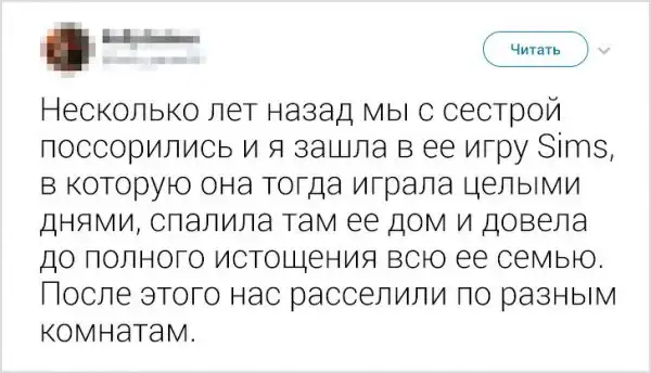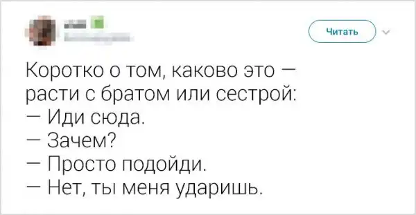 Говорят, что единственный ребенок в семье — это непременно избалованный эгоист, но все молчат о том, что взросление в окружении родных братьев и сестер способно выработать в человеке качества куда страшнее. Каждый, кому пришлось расти в условиях «здоровой конкуренции», хотя бы раз пакостил своему брату или сестре и радовался, подобно киношному злодею, когда тот получал от родителей нагоняй. И это только цветочки.