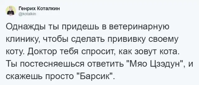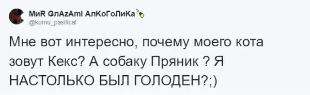 У многих из нас есть свои любимые домашние питомцы, которым мы порой даем весьма странные клички. Ведь так? Пользователь твиттера решил спросить у своих подписчиков о самых необычных именах домашних животных, которые они когда-либо слышали. Ответы не заставили себя долго ждать, почитать которые мы рекомендуем вам в продолжении поста.