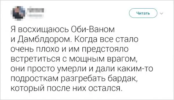 Твиттер — это настоящий кладезь житейской мудрости. Кажется, что здесь существует негласное соревнование за то, чтобы в 280 символах проявить всю свою оригинальность, нестандартный взгляд на мир и отменное чувство юмора, приправленное нотками иронии. И ведь некоторые пользователи попадают в самое яблочко!
