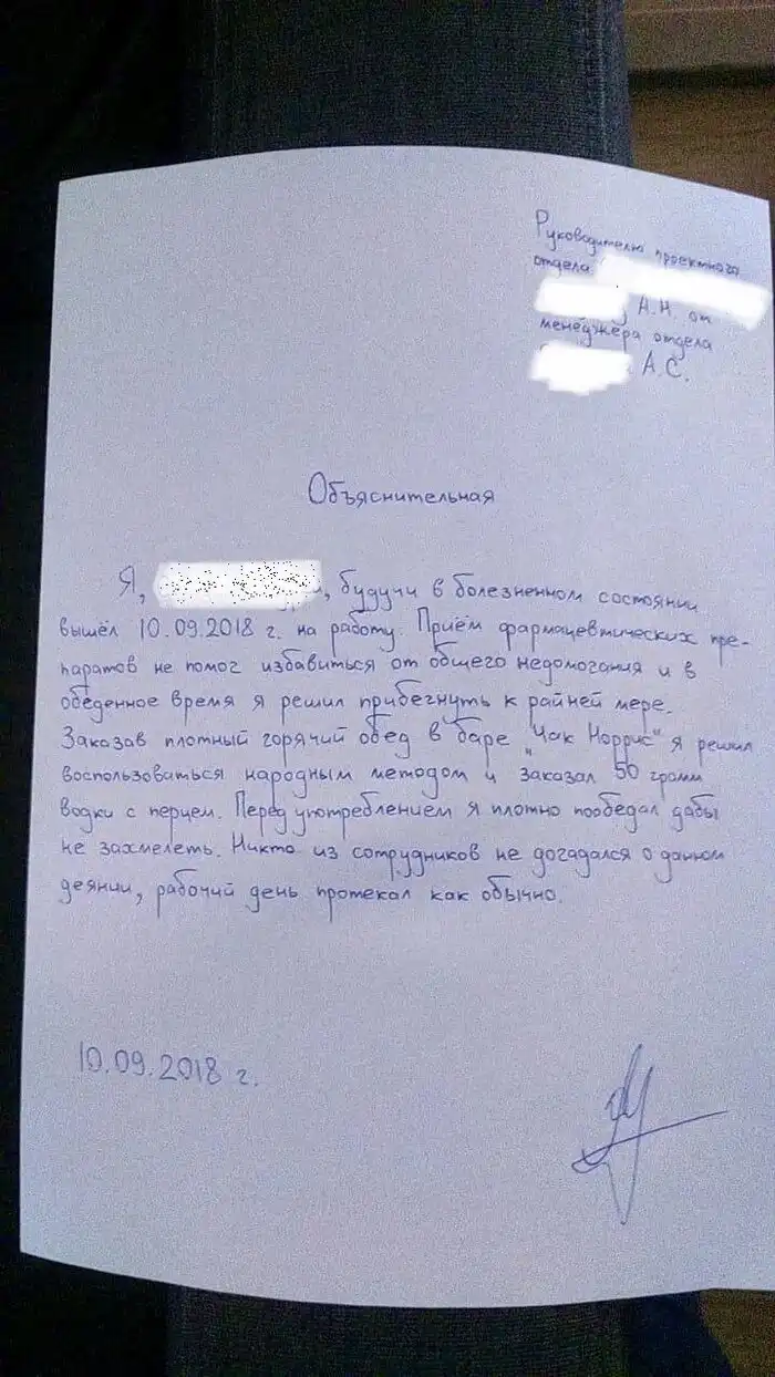 4. Некоторые настолько красиво пишут объяснительные, как будто они закончили какие-то специальные курсы