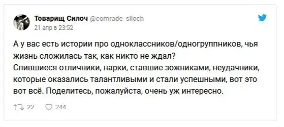 После выпуска со школы у каждого из нас началась новая жизнь, причем, далеко не всегда такая, о которой мы мечтали за школьной партой. У кого-то из наших одноклассников жизнь круто изменилась, а кто-то из студенческих одногруппников стал успешен или известен. Предлагаем вам почитать истории об одноклассниках/одногруппниках, которыми делятся люди в социальных сетях.