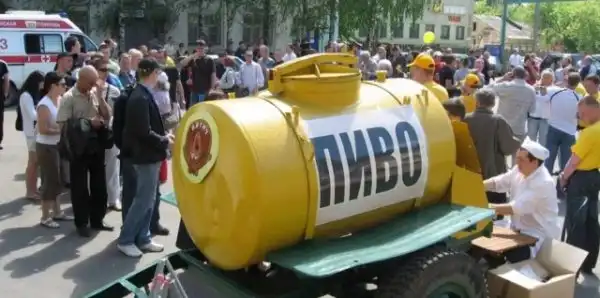 Помните были таки бочки с пивом и квасом на колёсах: