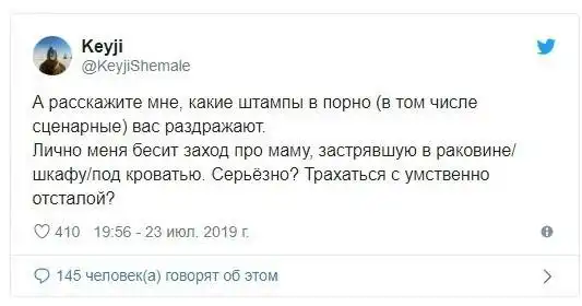 В твиттере юзера Keyji на днях стартовал тред про раздражающие штампы в порнографии. По итогам выяснилось, что фильмы для взрослых весьма несовершенны (ну надо же, да?).