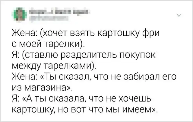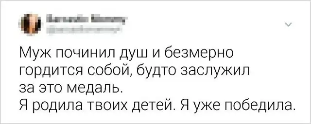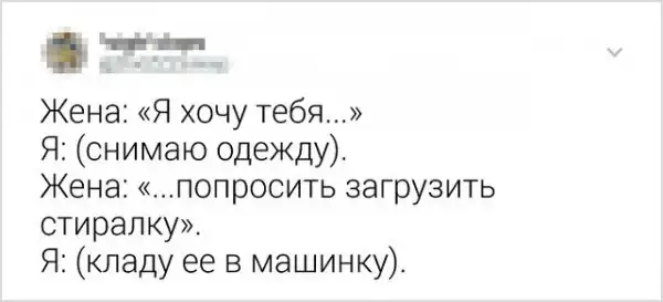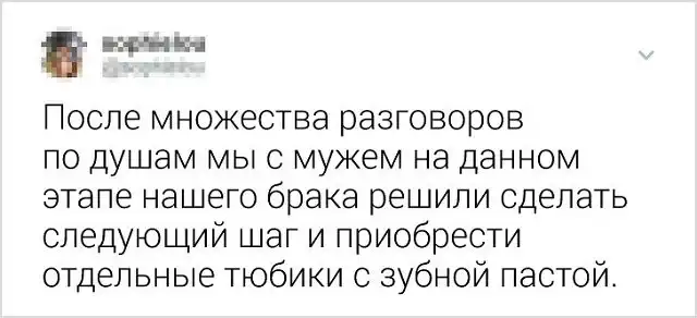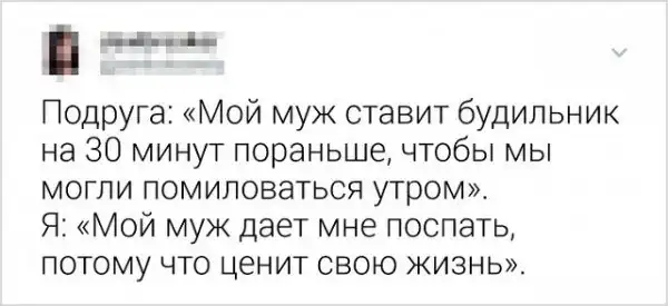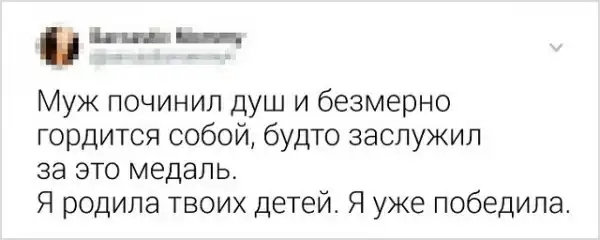 Смех не только продлевает жизнь, но и укрепляет отношения. Семейную жизнь не назовешь легкой "прогулкой по парку". Приходится ежедневно справляться с наскучившим бытом и терпеть дурацкие привычки супруга (или супруги). Поэтому, рутина разрушает многие отношения. Но если видеть во всем положительные стороны и подходить к жизни с юмором, и доброй долей сарказма, то мир заиграет новыми красками. Давайте посмотрим на подборку злободневных твитов от закоренелых семьянинов.