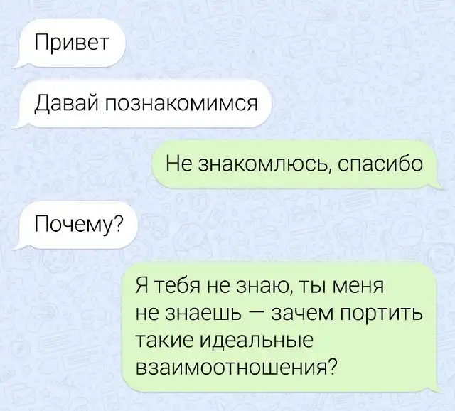 Выяснять отношения с девушкой - это долгий и мучительный процесс, который не всегда заканчивается хэппи-эндом. А если заниматься этим по переписке, то про взаимопонимание можно вообще забыть. В этой подборке собраны переписки влюбленных пар, в которых раскрывается вся правда об отношениях между парнем и девушкой. Давайте посмотрим на эти забавные сообщения и посмеемся с того, какими непоследовательными или, наоборот, предусмотрительными бывают люди в отношениях.